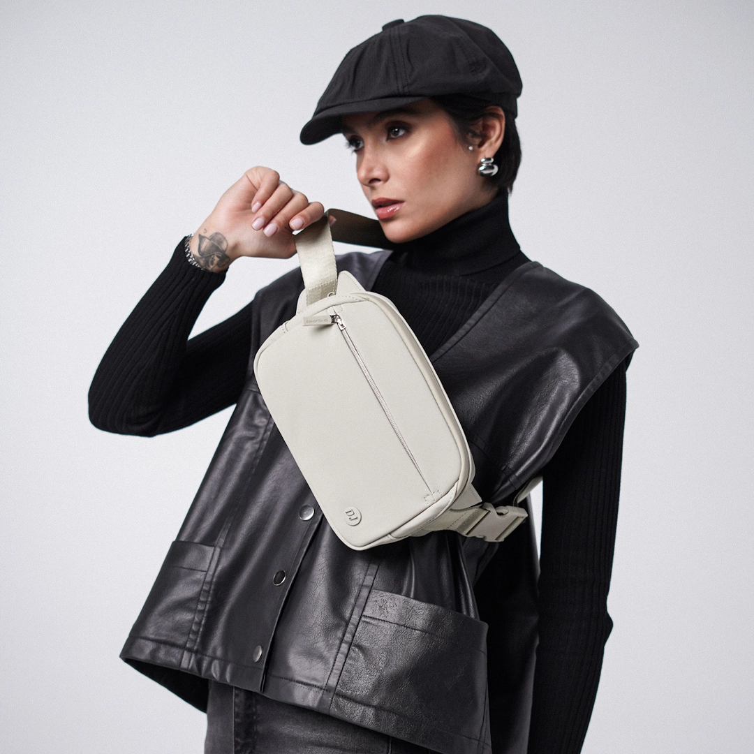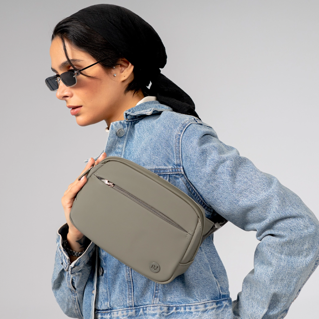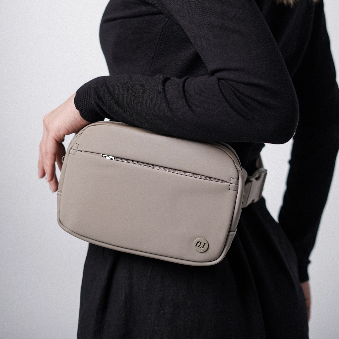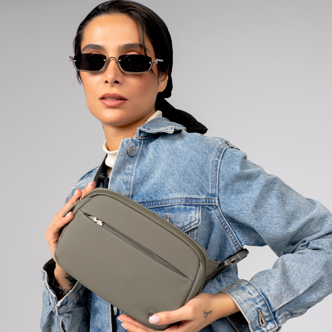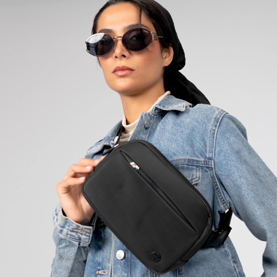 جنس و بدنه: جنس کیف از چرم مصنوعی و پارچهای بادوام تهیه شده که هم آسان پاکسازی میشود و هم انتخابی شیک و باکیفیتی بالاست. بند کیف قابل پوشش به شیوه روی شانه و روی کمر را دارد که با امکان تنظیم سایز راحتی شما را بیشتر میکند.